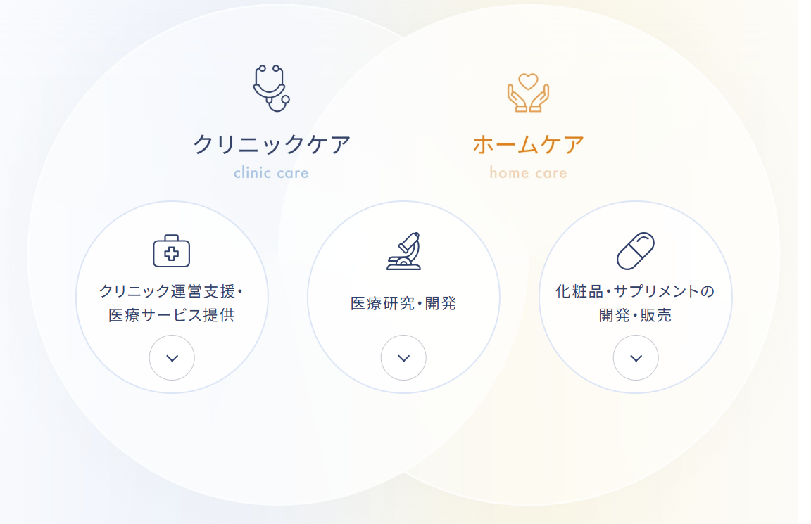 主軸となるのは、クリニック運営支援事業と、化粧品・サプリメント事業です。